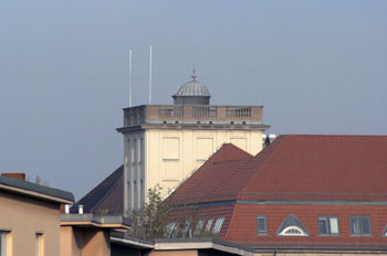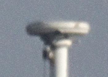 Weiteres Bilder vom selben Motiv an einem anderen Tag aufgenommen. Die Fahnenmastspitze ist etwas größer, weil diesmal ein Zenitspiegel zwischen Kamera und Teleskop montiert war. Dadurch verlängerte sich der Strahlengang und die effektive Brennweite des Systems. Diesmal ist die Auflösung erheblich besser. Würde man mehrere Aufnahmen stacken, wäre das Rauschen weg und man sähe mehr Details, weil der Einfluss des Flimmerns damit stark reduziert werden kann. |