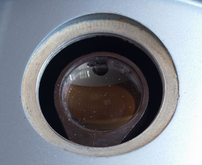 Bei unserem Test war die Anbringung der DSLR nicht optimal. Mangels eines passenden Adapters mussten wir mit einer 1,25" Zoll Einsteckhülse mit dem nach oben abgelenkten Lichtbündel fotografieren. Daraus ergab sich eine Vignettierung, die wir aus den Ecken der Gesamtansicht wegretuschiert haben. Das Fotografieren sollte idealerweise am hinteren Ausgang stattfinden.