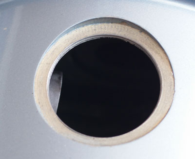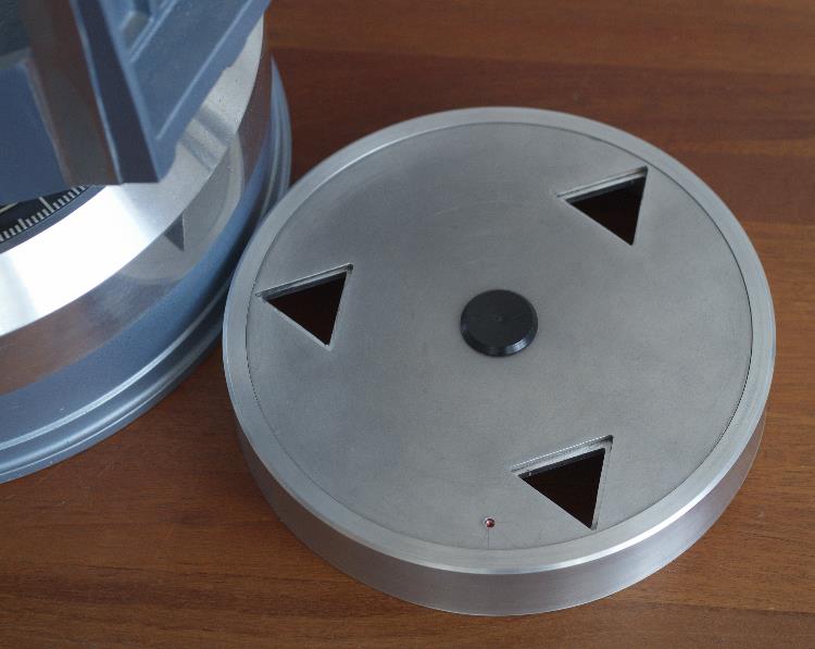 Die dreieckigen Löcher sind durch ein dahinterliegendes Rad verschließbar.