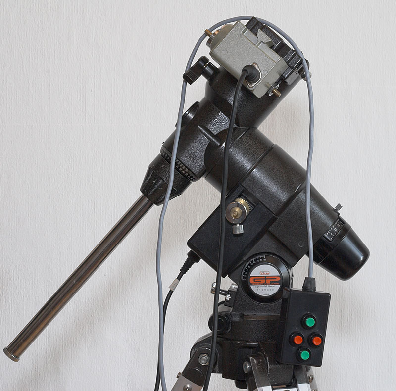 Beide Achsen der GP Montierungen können per Hand oder mit Motoren bewegt werden. An jeder Achse gibt es eine Schiene zum Anbringen eines Motors. Man kann sich mit einem für die RA-Achse begnügen oder zusätzlich die DE-Achse motorisieren. Je nach Anspruch, Neigung und Geldbeutel sind unterschiedliche Möglichkeiten der Stromversorgung und Steuerung der Motoren adaptierbar.