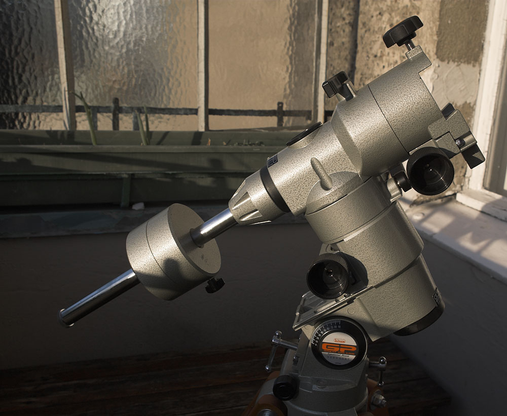 © Thomas GadeDie GP Montierung von Vixen ist eine parallaktische Teleskopmontierung. Es gibt drei Varianten: die GP-E, die GP und die GP-DX. Sie unterscheiden sich durch wenige Details. Die GP-E und GP sind grundsätzlich gleich, wobei die GP mit einem Polsucher und Teilkreisen besser ausgestattet ist. Die GP-DX hat ein höhere Tragkraft.