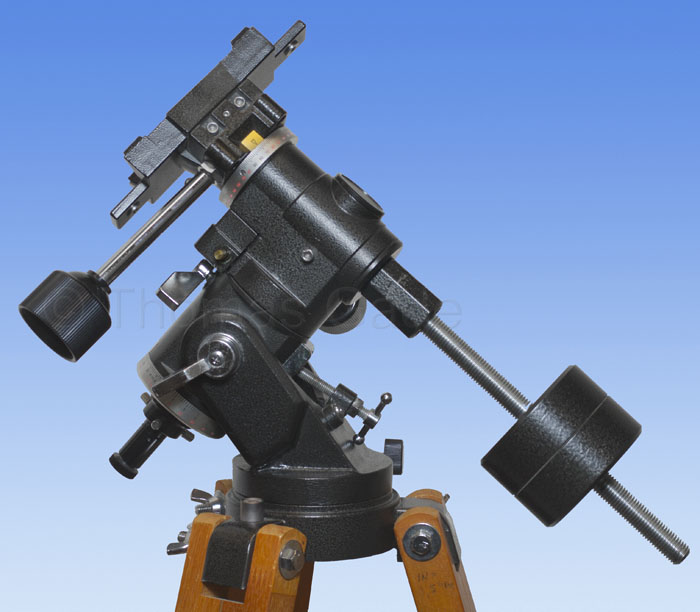 Diese Montierung wurde meistens von Stative mit Holzbeinen getragen, die ganz ordentlich waren. Vixen bot auch Alustative an, die aber eher für die größeren Montierungen gedacht waren und mehr kosteten. Holz ist jedoch ein guter Träger und dämpft Schwingungen. Außerdem können solche Holzbeine bei Schäden leicht selber wieder hergestellt oder repariert werden.